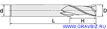 Технические характеристики фрезы концевой по алюминию, магнию (мм):