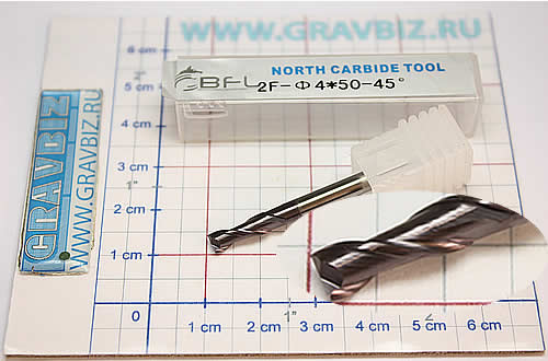 Фреза концевая, спиральная, торец DØ2мм. двух заходная (2 зуба), хвостовик L50мм Ød4мм, прямоугольная, износостойкое покрытие алюмонитрид титана TiAlN HRC45 LXD2F4D0020