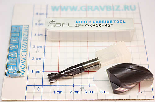 Фреза концевая, спиральная, DØ6мм. двух заходная (2 зуба), хвостовик L50мм Ød6мм, прямоугольная, износостойкое покрытие алюмонитрид титана TiAlN, LXD2F6D0060